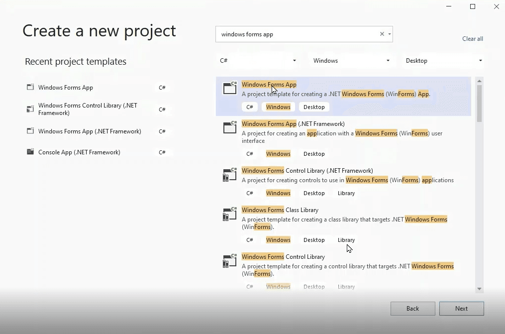 Δημιουργούμε ένα καινούργιο project στο visual studio, επιλέγουμε να χρησιμοποιήσουμε το .net core και όχι το .net framework. Η microsoft γενικά συνιστά το .net core. Ίσως να γράψω ένα άρθρο για τις διαφορές μεταξύ των δύο.