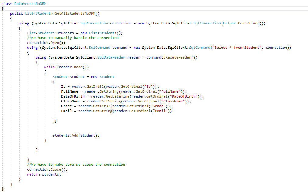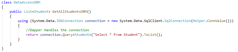 Με τη χρήση του Dapper γράφοντας το πιο κάτω κώδικα