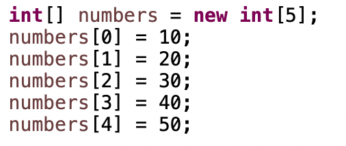 Με το που δηλώσαμε το array, η Java δεσμεύει στη μνήμη 5 θέσεις με αξία 0.
