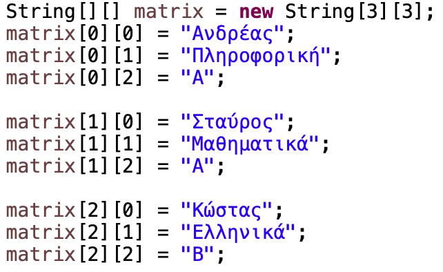 Πιο κάτω θα δεις το παράδειγμα με τον πολυδιάστατο πίνακα