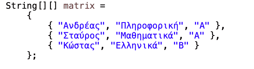 Πως δηλώνουμε ένα δισδιάστατο πίνακα;