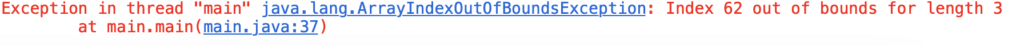 Όταν γίνει λάθος η Java εκτυπώνει το ακόλουθο, που σημένει ότι είμαστε εκτός του εύρους του πίνακα και πρέπει να προσέξουμε καλύτερα το δείκτη μας